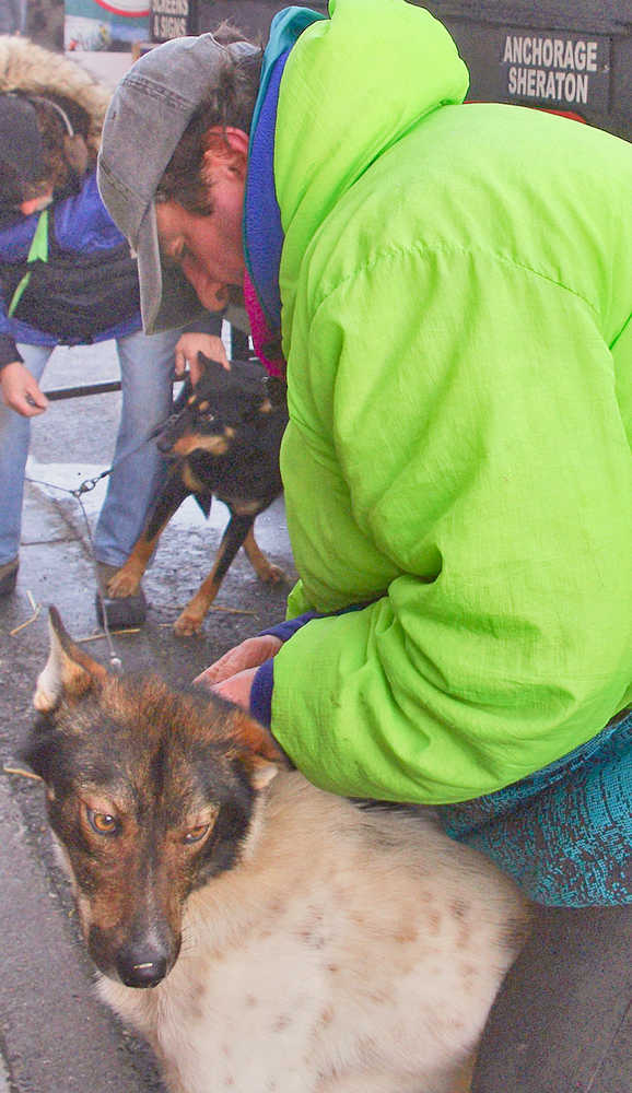 Early Saturday morning, musher trucks lined city streets, and fans like Nancy Alstrand of San Diego spent hours meandering from musher to musher, stopping to chat or pet dogs.