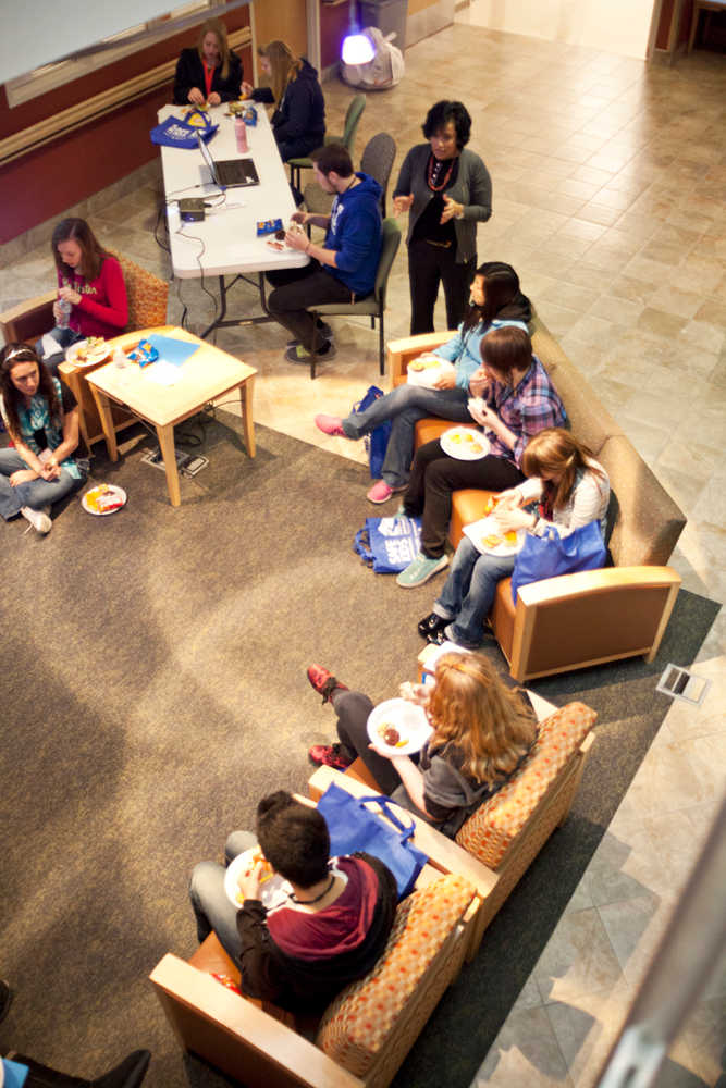 In the Denali Conference Room a station for each area was set up around the room for students to visit and talk to different employees in the various fields.