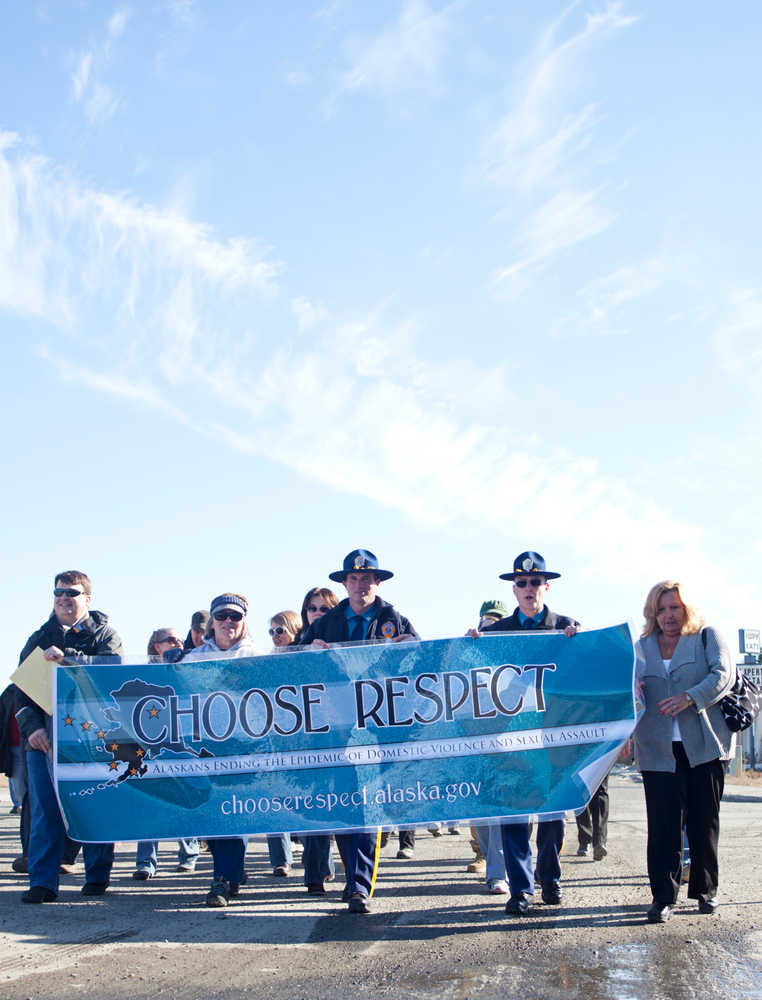 Blizzard, a Kenaitze tribal council member, was one of more than 100 people who came out in support for the 5th annual Choose Respect Awareness walk in Kenai Thursday. Organized by the LeeShore Center in Kenai, the event is part of a statewide initiative started in 2009 by Gov. Sean Parnell.