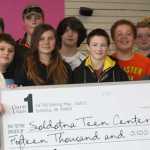 Credit Union 1 gives a big check to Teen Center and Payless gives shoes to kids