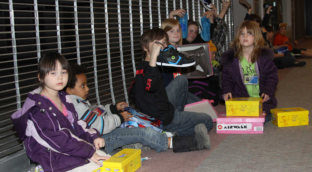 According to Tina Patterson, the Teen Center Director of the Boys & Girls Clubs the center has already grown to 57 members, “My goal is 100 but we are already booming and growing every day and this money will go toward needed supplies, art project equipment and the things the kids want here. We’re very grateful to Credit Union 1 for stepping up and helping us make this a place kids want to come to have fun and learn,” she said. Meanwhile, Heather Schloeman, executive director for the Boys & Girls Clubs of the Kenai Peninsula earlier in the week brought 30 some club members to the Payless Shoe Store at the Peninsula Center Mall for a free shoe shopping spree, “Through a national program of Boys & Girls Clubs of America we are given opportunities to partner with businesses such as Payless to apply for a grant and this year we were awarded 150 $20 gift cards. So we loaded our vans up with kids and brought them here to go shoe shopping. It take them long to realize they could get more than one pair of shoe for their $20 and one girl actually found four pairs for her 20 dollars. The kids really learned to shop and we are very grateful to Payless for giving our kids have the chance to come here and pick out their shoes,” she said. “I got some Air Walk shoes and they are supposed to make you feel like you’re walking on air and able to jump higher too,” said 8 –year-old Ky.