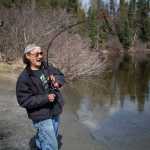 Photo by Rashah McChesney/Peninsula Clarion Bill Schmidt, of Sterling, shouts as he lands a landlocked sockeye salmon, or kokanee, while fishing Wednesday May 7, 2014 at Sport Lake in Soldotna, Alaska. Schmidt said his wife wanted the fish for her birthday, so he spent part of the afternoon fishing for the kokanee which he intends to smoke and gift to her.