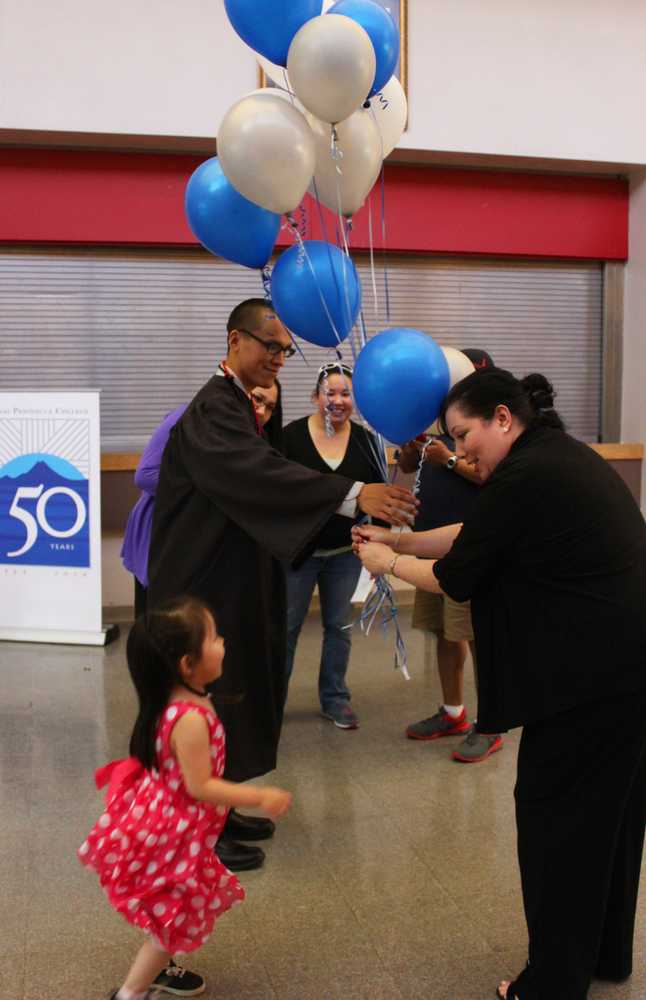“That’s my daughter!” Mark Bevans shouted across the packed auditorium at Kenai Central High school as Kenai Peninsula College professor Henry Haney told Kristin Pruett she was one of the best students he’d ever taught.