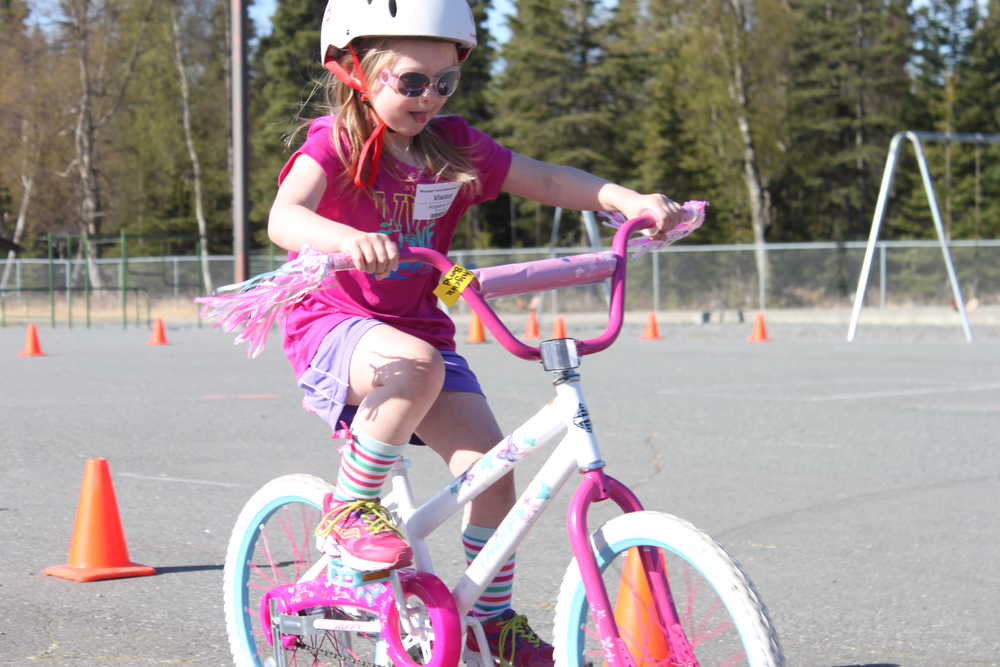 Pearson was just one of many first- and second-graders at Mountain View Elementary School in Kenai to complete the course at the annual Bike Rodeo event on Friday.