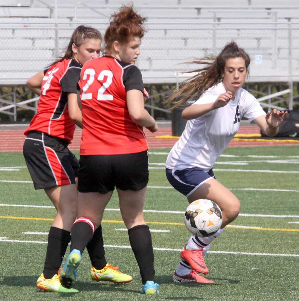 Five minutes later, Kylee and Alyssa Wolfe combined for another goal to give Soldotna the 3-0 lead. Kylee Wolfe centered a pass from the left side, and Alyssa Wolfe chipped in the ball for her second goal of the game.