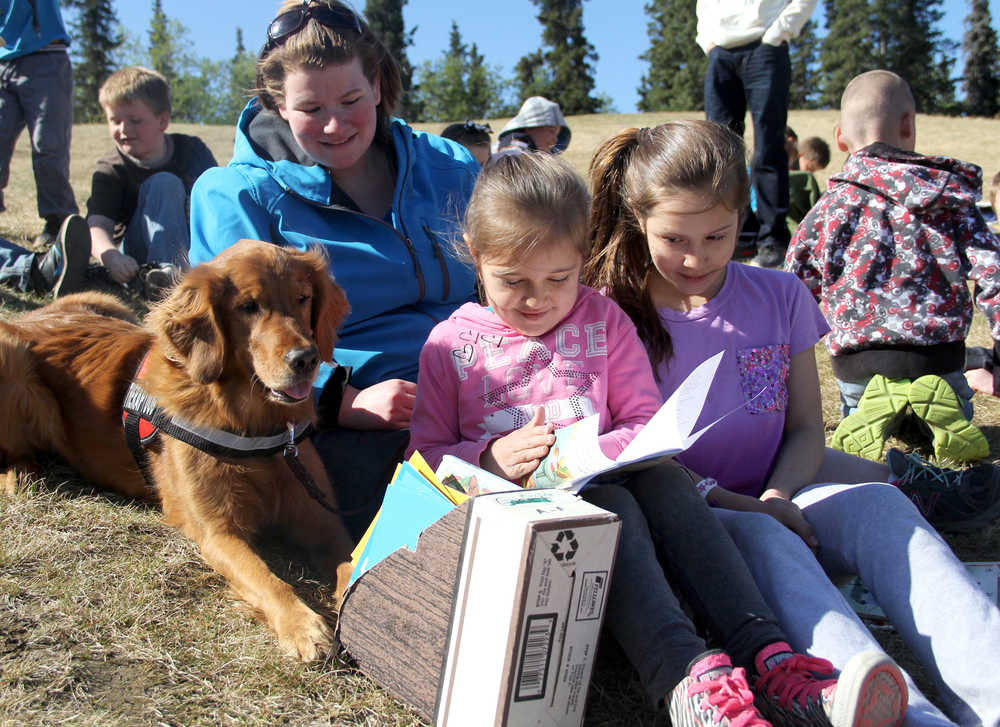 Lucy, a Golden Retriever, regularly listens to stories read by students at Kalifornsky Beach Elementary School in Soldotna.