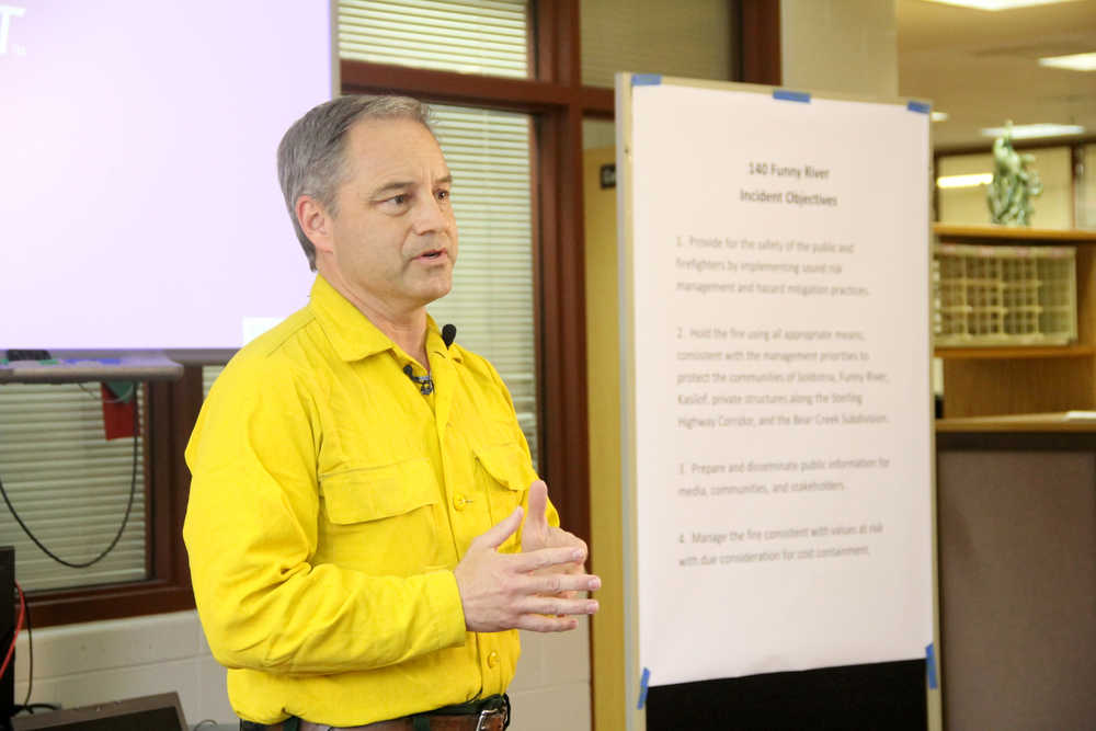 Gov. Sean Parnell attended the afternoon media briefing at the incident command center at Skyview High School. He flew over the fire Sunday and witnessed the efforts of crews.