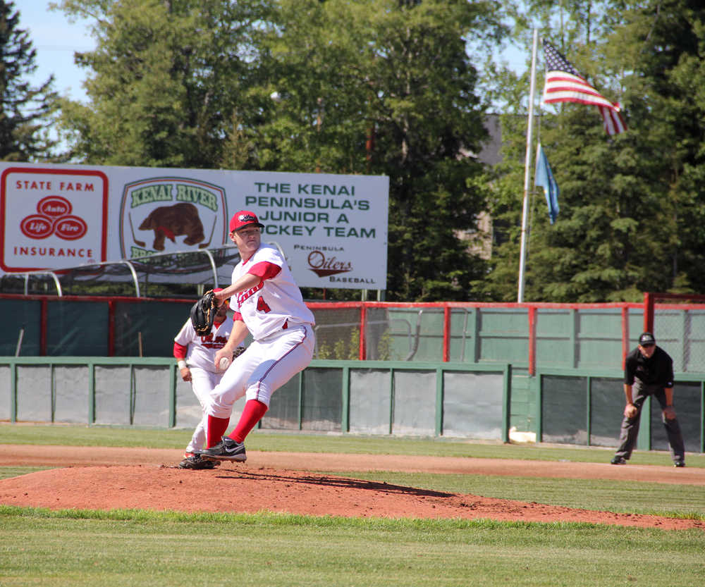 Photo by Dan Balmer/Peninsula Clarion Peninsula OIlers starter Sean Mason delivers a pitch in the second inning of the Oilers season opener against the San Francisco Seals Sunday.
