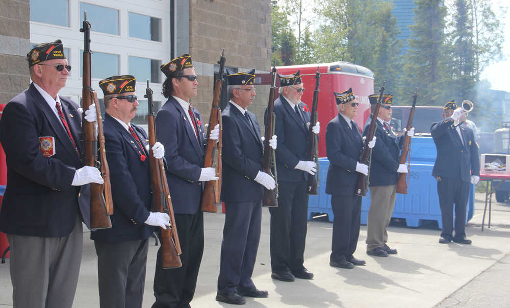 In reading the official city of Kenai and Soldotna proclamation naming June 14th Military Appreciation Day, Kenai Mayor Pat Porter introduced Col. Mike Hunt, WWII fighter pilot who has been diligent in preserving WWII aircraft and keeping them flying, “I was just a poor farm boy from Iowa that the Army taught to fly these birds and right now I’m promoting the Alaska Wing Commemorative Air Force. In my lifetime I’ve accumulated some war birds and I’m now giving them to the Commemorative Air Force so that other pilots will experience flying them and keep the legacy of WWII alive for generations to come. The missing man formation they flew today brought back a host of memories of men and women that should never be forgotten. We flew around the world with just a compass and a map and today a pilot doesn’t even have to look out the window, it’s fantastic how far we’ve come in my lifetime,” said Col. Hunt.