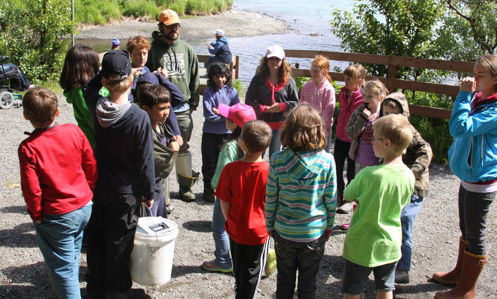Happy campers rain or shine at Soldotna Creek Park as the science of the Kenai River becomes fun and games for kids under the tutelage Kenai Water Shed Forum (KWF) education director Dan “The fin fan man” Pascucci. “Summer camp is full of kinds of great, exciting things as we get outside as much as we can but if we get rained out we have a great spacious yurt with a river side and a forest side and inside fun goes on!” said Pascucci in an interview with the Dispatch. “The Kenai Watershed Forum is happy to offer Fur, Fins, Feathers, Flowers, and Fun at Soldotna Creek Park. A great way for your child to spend a summer day exploring the banks of Soldotna Creek and searching for aquatic insects, flipping over logs in search of decomposition in action, or playing in a forest pretending to be a predator on the hunt? Every week is a good time to be outside learning more about the environment,” said Pascucci.