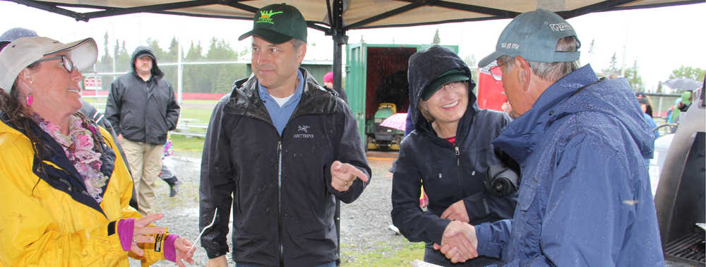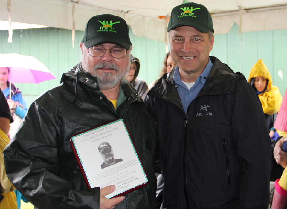 Just like major league baseball and many minor teams like the Peninsula Oilers the Frontier Community Services (FCS) World Series of Baseball event has created a Hall of Fame to honor individuals to be remembered thought out time. For the inaugural induction last week at the 10th Annual FCS World Series of Baseball for individuals with disabilities the Governor of the State of Alaska Sean Parnell and his wife Sandy traveled to Kenai during heavy rains to personally congratulate the inductees and the FCS athletes. “I recognize as our founding fathers did that each one of us, regardless of our ability or perceived disability, each one of us is made in our creator’s image and have certain inalienable rights. Every person is valued, and every person has value, every person has a purpose and the love that I see here at this baseball event is something that I appreciate very much and is touching and the love that the Peninsula community has for all of its people is something we should hold close and dear for many years to come. It was great to be here to induct Joe and Ken into the Hall of Fame as a legacy of this event and FCS’s contribution to the community,” said Governor Parnell.