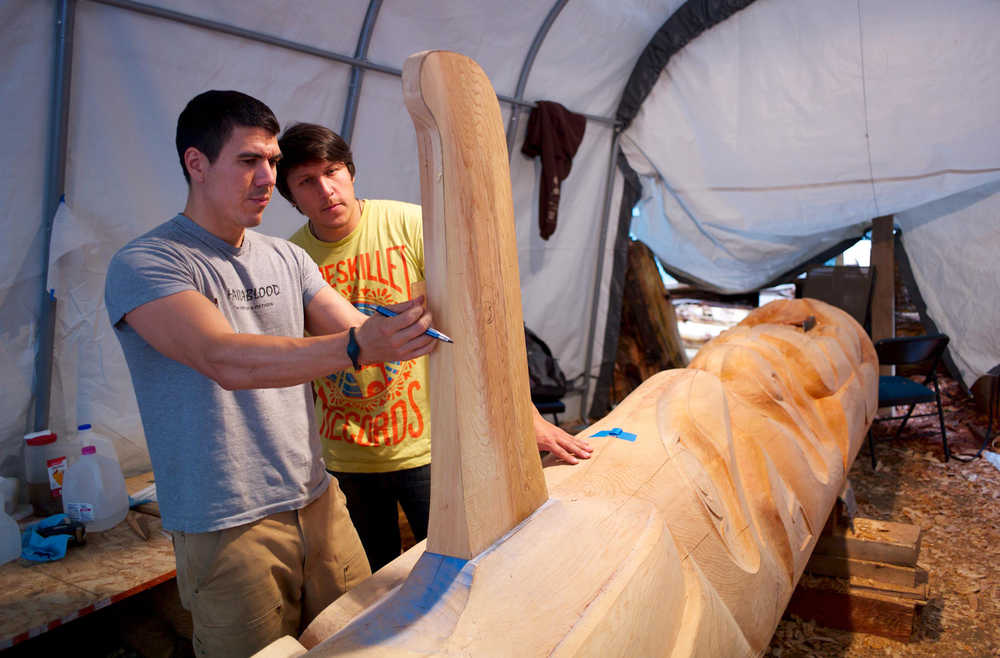 When Haida carvers Joe and TJ Young were teenagers in Hydaburg 20 years ago, apprenticeship opportunities there were scarce. To learn the basics of carving and design, they built on carpentry skills learned in high school and cultural knowledge passed on from their grandfather, Claude Morrison. The rest they picked up wherever they could.