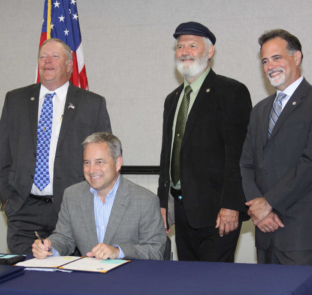 Sen. Micciche had a bill signed dealing with contractors that hadn’t been updated since 1983. “SB # 71 is a law that’s a boost for commercial fishing families which are still the number one employer in the state and simplifies their tax structure while expanding the Alaska salmon development tax credit, which will help bring jobs back here where Alaskan hands will finish our seafood products before they go to the table. Then SB 193 is important for consumer protection which was last addressed in 1982 and increases the level of protection for the consumer as well as protecting contractors if one contractor decides to default on performance it increases the bond limit so other contractors can collect. This bill was brought forth by the Association of General Contractors and basically adjusted for inflation. Both these bills I believe will lead to more jobs for Alaskans and more industry to create those jobs. I was happy the Governor came to Soldotna to sign them into law,” said Micciche.