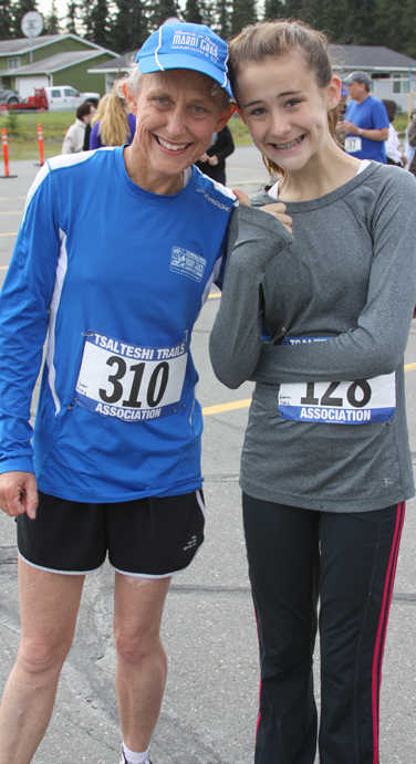 Repeating her 10 mile Unity Run 1st Place win in the women’s division was Susan Craig who recently moved back to Soldotna from Louisiana, “We thought this is a great place to raise our kids, family friendly atmosphere like you see here at the Unity Run and good schools so that’s why I wanted to come back,” said Craig whose daughter Emma ran in the 5K Unity Run, “I started running with my mom when I was six or seven and I am very happy that she has won her race two straight years, I may be able to beat her someday but not today. I like the short runs because you don’t have to train that hard, you can just go out and run have fun and meet a lot of really cool people,” she said. “You better believe I’ll be back next year to try for the three-peat,” said Craig clocking the 10 mile run in 1 hour: 18 minutes and 19 seconds. Coming in second to Craig was Jodi Hansen with a time of 1:31:28 and in third was Kelli Murray at 1:33:10.