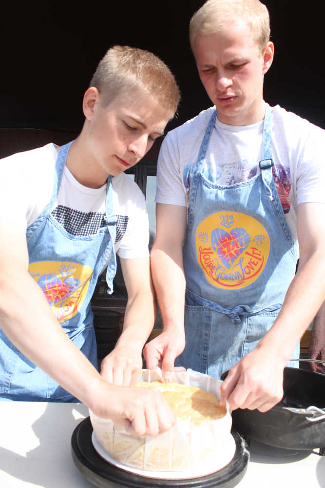 The two are in this year’s competition, and have spent their afternoons on the large porch at the Anderson home overlooking the Kenai River and learning to monitor the coals on the traditional German and Swedish dishes they will be cooking during Progress Days.