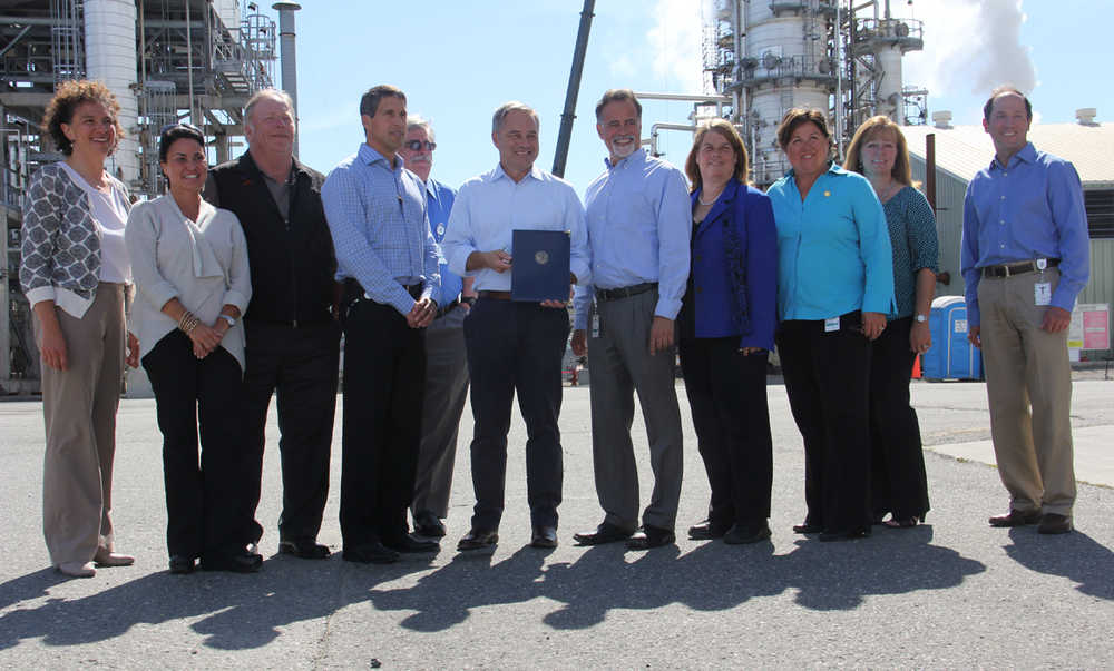 It was a good day for Tesoro and their employees as Governor Sean Parnell accompanied by commissioners and local legislators and officials attended a bill signing ceremony at the Tesoro Nikiski refinery. “It was a pretty important day for the Tesoro refinery here in Nikiski as it was the day I signed the bill that extended the royalty contract with Tesoro, meaning that they can buy royalty oil from state for an additional year which keeps people on the Peninsula employed and keeps us producing Alaskan oil for Alaskans as well as providing corporate income tax incentives to encourage our refiners who want to invest more in infrastructure do so which will expand our refining by the in-state industry and create more jobs for Alaskans,” explained Parnell.