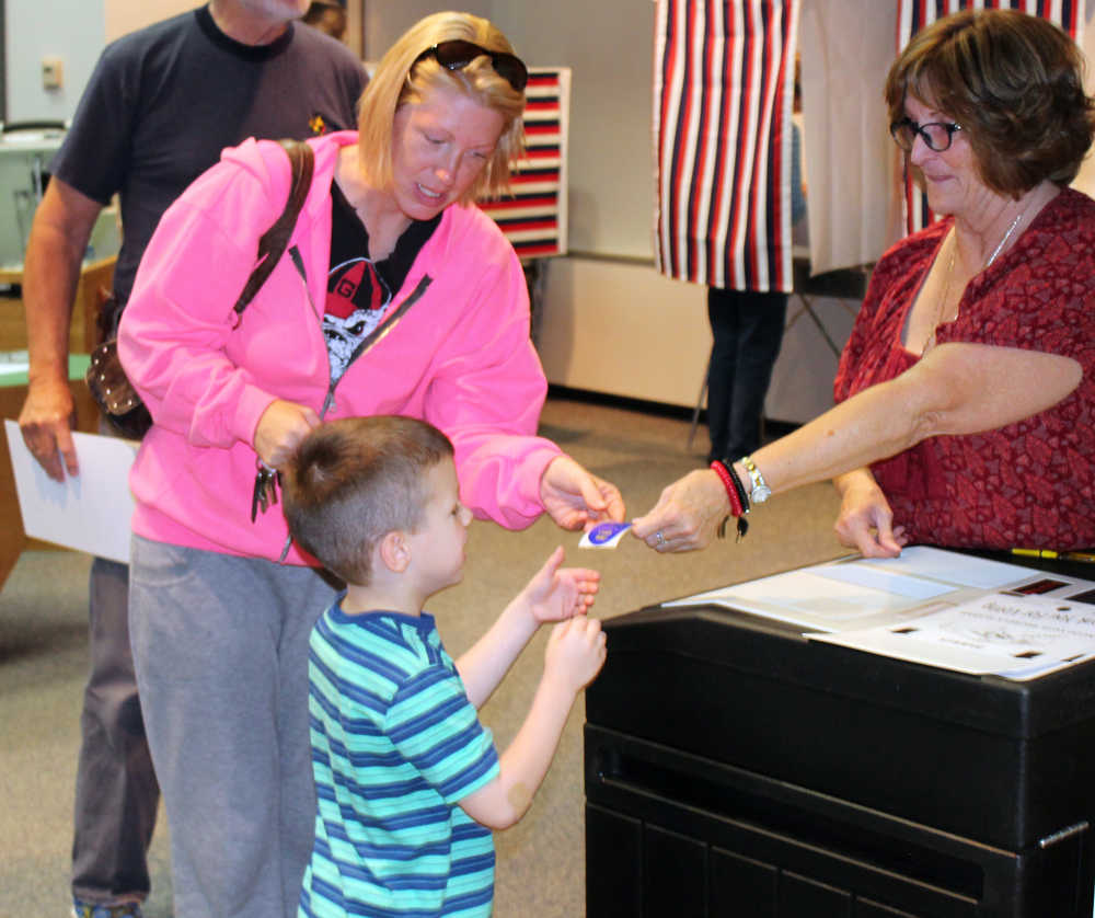 Tasha Walden brought her son Urijah, 5, to Soldotna City Hall to teach him about voting. When her son asked her why people vote, she said it is our right as Americans to vote yes or no on important issues.