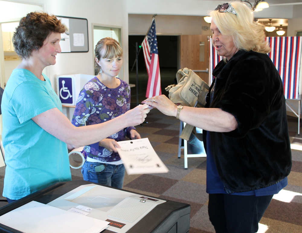 Susan Smalley, who was manning the poll at the Kenai Senior Center, said the workers saw a steady flow of voters through the morning. She said the warm sunny day brought voters in via motorcycles and bicycles.
