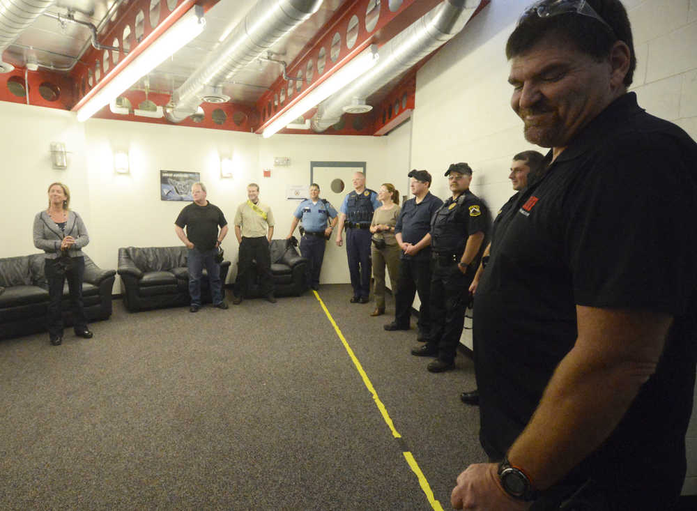 Uniformed officers from law enforcement agencies throughout the Kenai Peninsula joined with Kenai Peninsula Borough School District administrators to learn about ALICE.