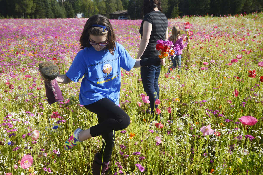 Photo by Kelly Sullivan/ Peninsula Clarion Hadessah Parkki and her mother Heather Parkki and sister Leia Parkki stopped at the park off the Kenai Spur Highway after school to pick the variety of wildflowers blooming, Friday, August 29, 2014 in Kenai, Alaska.