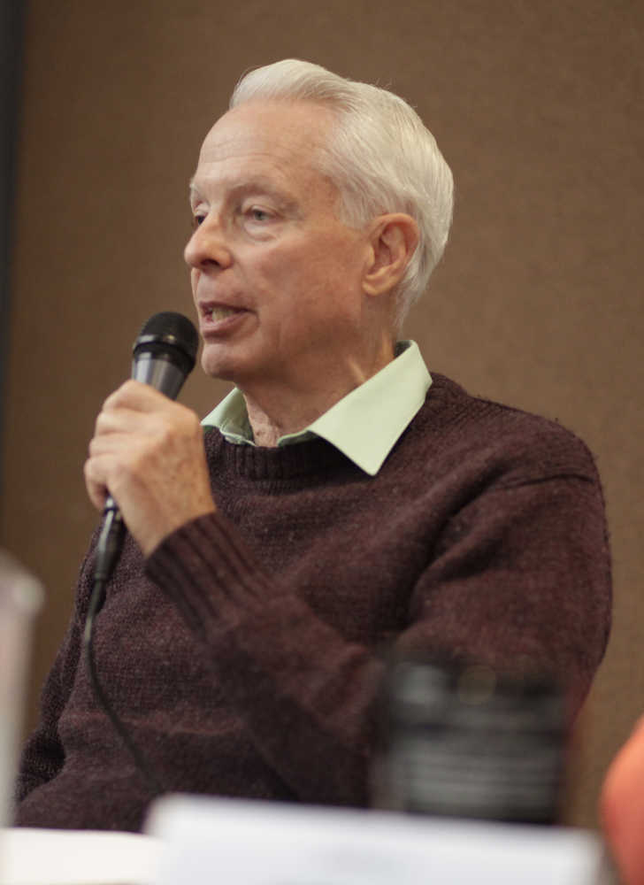 Photo by Kelly Sullivan/ Peninsula Clairon Stan Welles spoke at the Kenai Peninsula Borough Assembly Candidate Forum at the Kenai Visitor and Cultural center, Wednesday, September 17, 2014 in Kenai, Alaska. Welles is running for the Sterling seat in the Kenai Peninsula Borough Assebmly regular elections on Oct. 7.