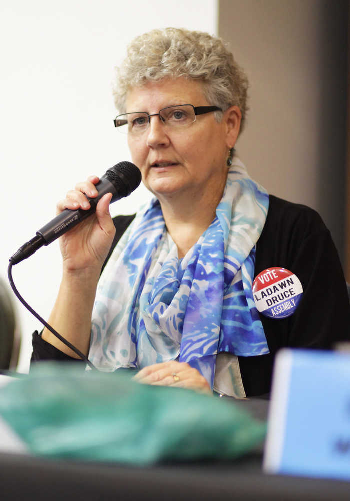 Photo by Kelly Sullivan/ Peninsula Clairon La Dawn Druce spoke at the Kenai Peninsula Borough Assembly Candidate Forum at the Kenai Visitor and Cultural center, Wednesday, September 17, 2014 in Kenai, Alaska. Druce is running for the Sterling seat in the Kenai Peninsula Borough Assebmly regular elections on Oct. 7.