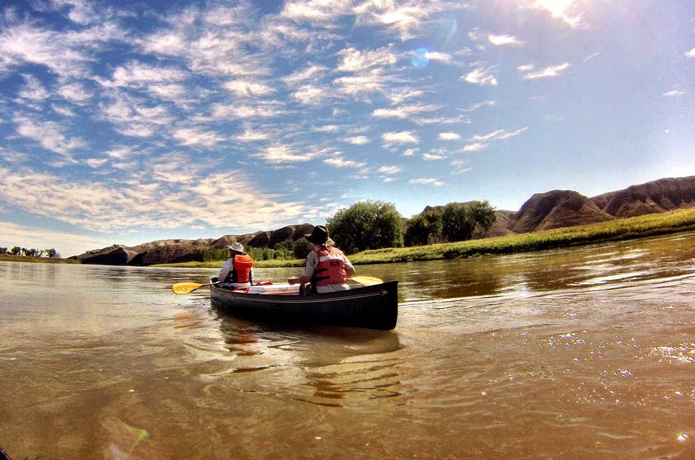 In a  Sept. 3, 2014 photo, floaters look for EarthCache sites on the Missouri River near Fort Benton, Mont. The Upper Missouri Breaks Interpretive Center recently established an EarthCache trail along the Wild and Scenic Upper Missouri River.(AP Photo/Great Falls Tribune, Erin Madison)