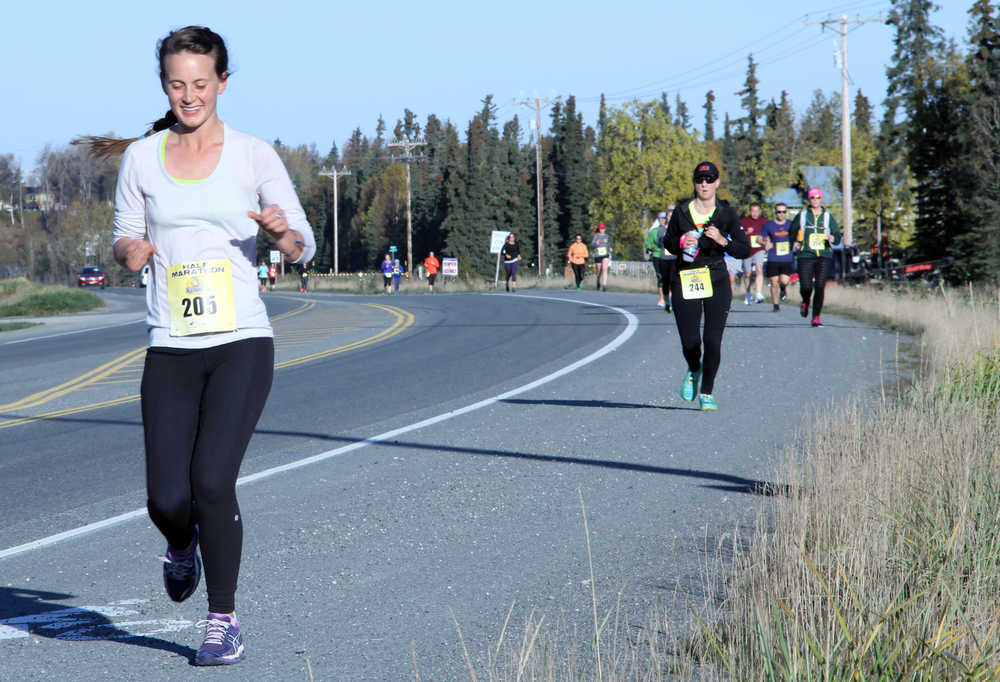 Anchorage resident Nina Schwinghammer said the Kenai River Marathon is her favorite race to run. Two weeks ago she ran in the Equinox Marathon in Fairbanks in the pouring rain. The conditions on Sunday were the complete opposite and more entertaining, she said.