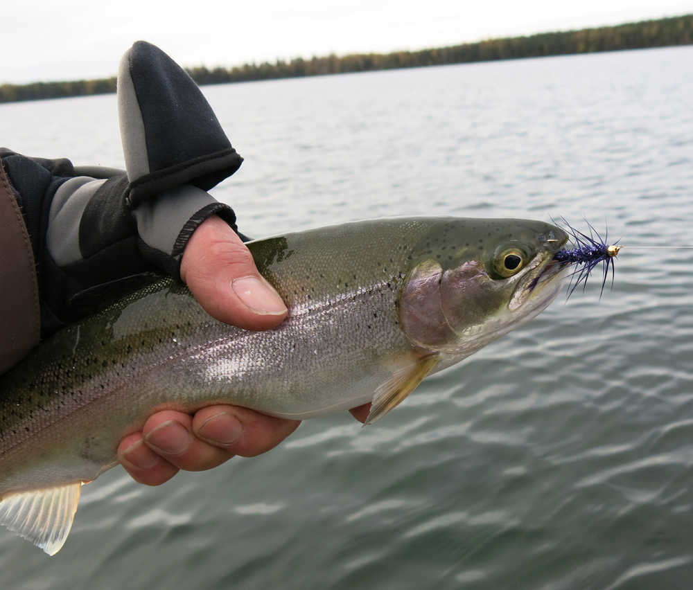 Here you can up your fly rod to a 4- or 5-weight, or fish with an ultra-light spinning rod, for trout and Dolly Varden, fish that typically range between 12- and 16-inches, with the occasional lunker breaking the 20-inch mark.