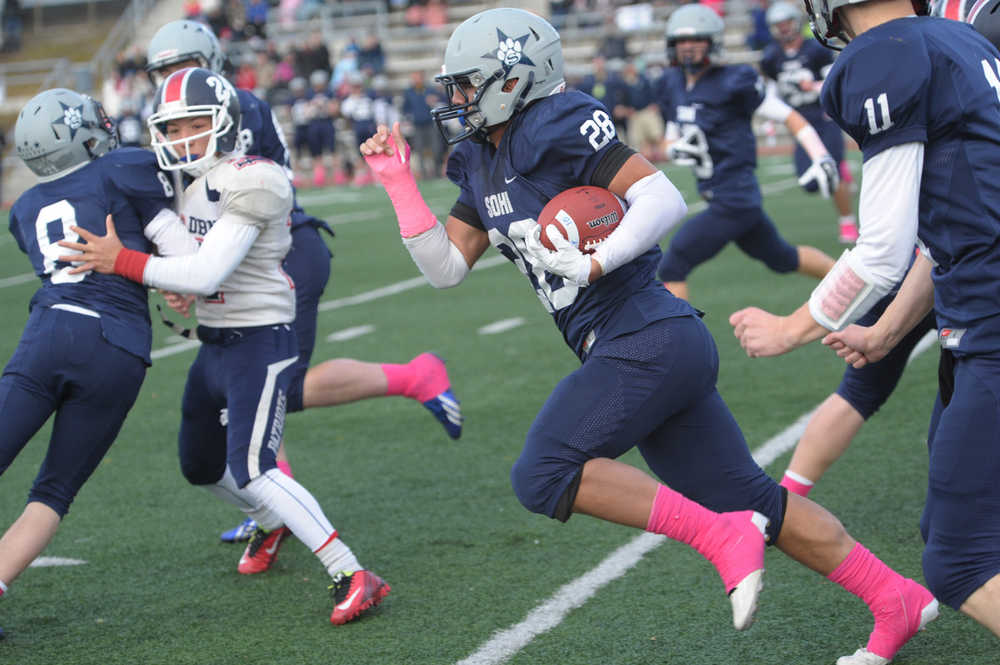 But, since this is Soldotna they were playing, a return touchdown was in the script. The Stars responded with a 67-yard, 11-play drive that ended on a Fenton touchdown run, bumping SoHi’s lead to 51-21. Soldotna scored again after successfully converting on an onside kick, its second of the game.