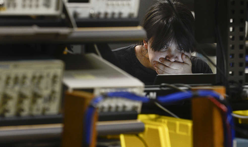 Photo byRashah McChesney/Peninsula Clarion Cat Walsh, an instrumentation student, workes to build a database Wednesday Nov. 12, 2014 in the ... building at the Kenai Peninsula College Kenai River Campus in Soldotna, Alaska.