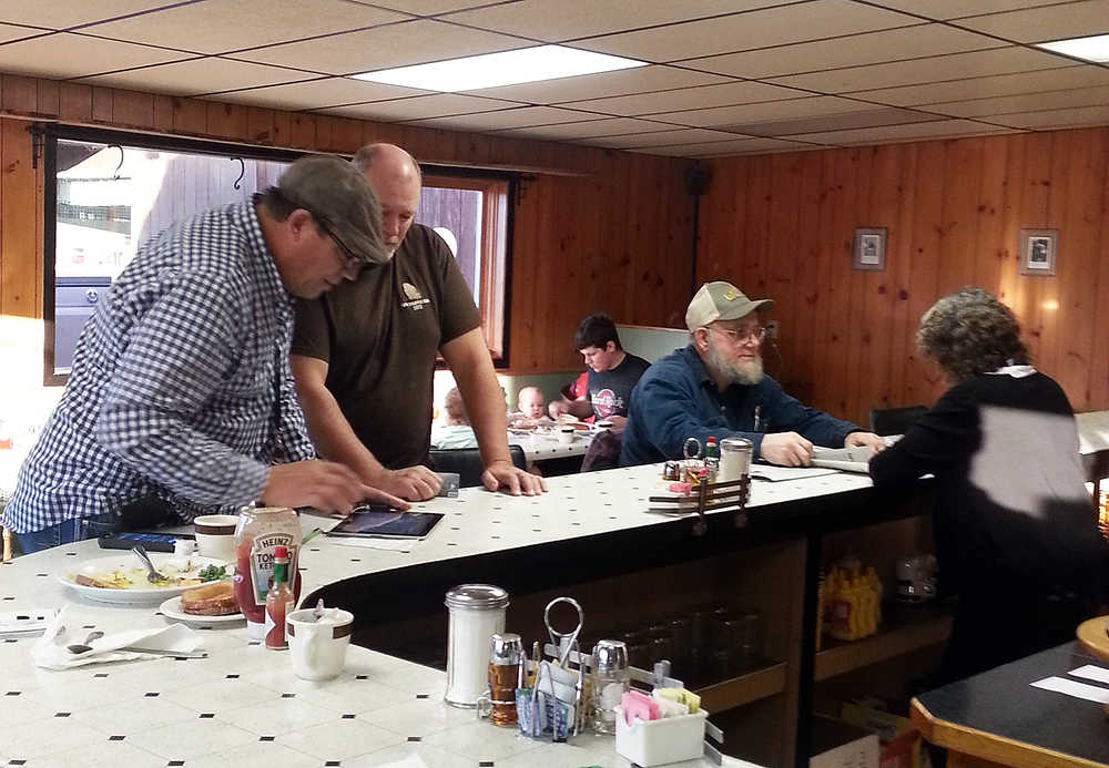 The dining room has wood panel walls and seats at the counter that wraps around the service area to the kitchen. While Shea Drolet initially started out serving breakfast and lunch, he has opened up another dinning room set up for buffets and space for 80 seats. The extra space can accommodate meetings, events or parties in a smoke-free environment, he said.