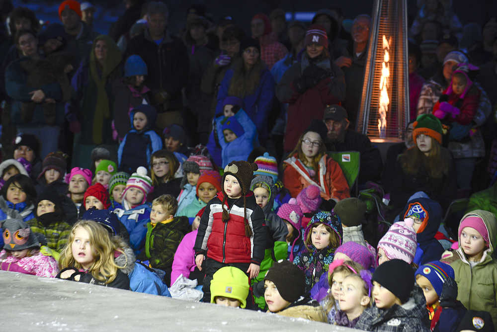 As dozens of children performed on stage, dozens more ran around in the snow — surprising each other, and their parents, with snowball fights and spontaneous snow angels. At times, the shouts of laughter drowned out the show.