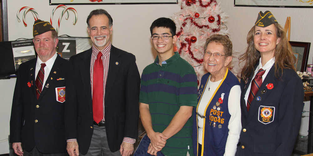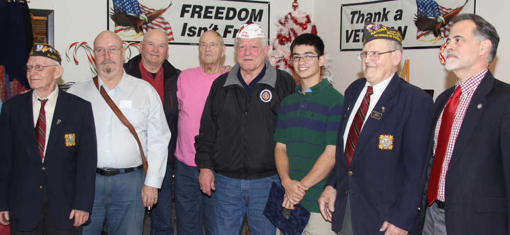 The Veterans of Foreign Wars Jerry V. Horn Memorial Post # 10046 and its’ Ladies Auxiliary honored this year’s local Voice of Democracy (VOD) winner Tuesday, December 9th at a general membership meeting at the VFW Post in Soldotna. The prompt for this year’s national competition was “Why I Appreciate America’s Veterans.” For some 15 years Rachel Jurco of the VFW Ladies Auxiliary has been coordinating the VOD program, “It started by NBC back in 1947 as an essay competition then the VFW became a partner them for a number of years until the Veterans of Foreign Wars took it over completely sometime in the early ‘60’s. It’s a program that has gone on for years and a lot of students have benefited and had life changing experiences through it,” said Jurco.