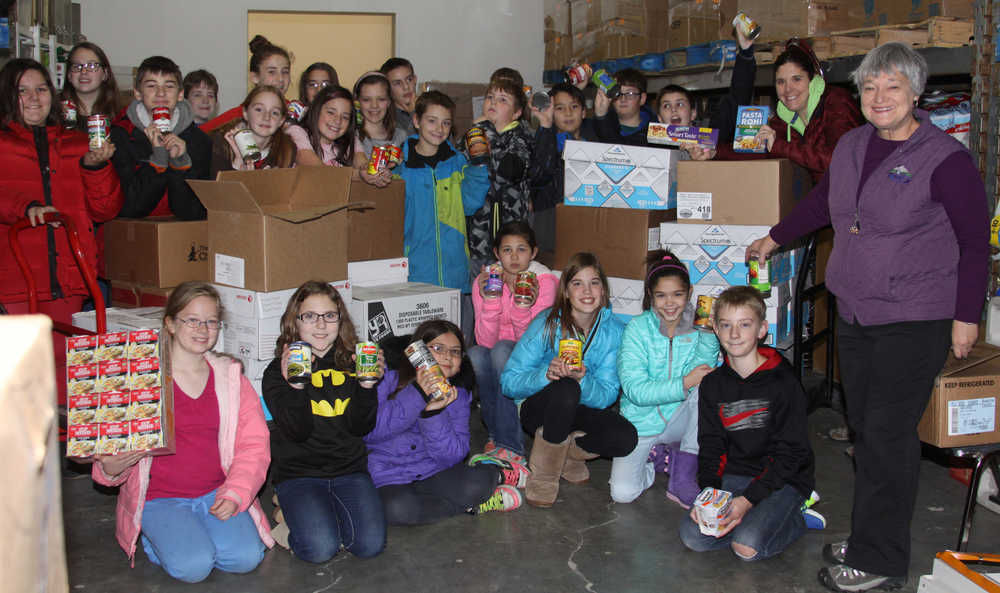 Several years ago Sharon Hale at Redoubt Elementary School started a holiday food collection called the “Great Redoubt Grocery Grab!” The idea was to let the students be aware of the needs of those less fortunate during the holidays starting with Thanksgiving by encouraging them to bring in food items that could be donated to the Food Bank. Then to make it more fun for the kids on two weekends she had local celebrities come in to race down the halls and see who could collect the most groceries by the time they reached the other end of school. “It’s fun for the kids to collect food and they take it to the food bank and volunteer while they are there,” said 6th grade Redoubt teacher Krista Arthur. This year Borough Mayor Mike Navarre ran against KPBSD Superintendent Sean Dusak, with Navarre finishing second but challenging the kids that he would match dollar for pound they collected up to $1,000, “I lost but it’s a great program and the kids do a great job for our community and the Food Bank with an unparalleled amount of enthusiasm. I was raised in a grocery store and we did what we could, but today with the Food Bank it’s a tremendous benefit to those in need in our community,” said Navarre.