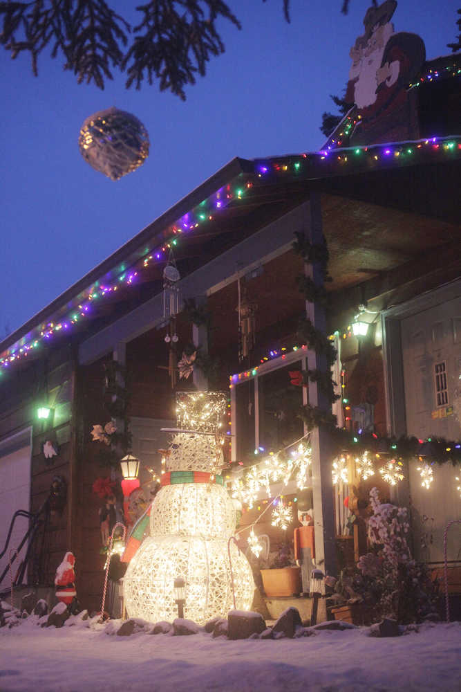 Photo by Kelly Sullivan/ Peninsula Clarion Tara Chipman said it takes her family about three hours to complete their annual Christmas decorations, shown here on Monday, Dec. 22, 2014, on Rogers Road in Kenai, Alaska. Halloween and Christmas are the two holidays Chipman "decks out" the house for, she said. The interior of the home receives attention as well, she said.