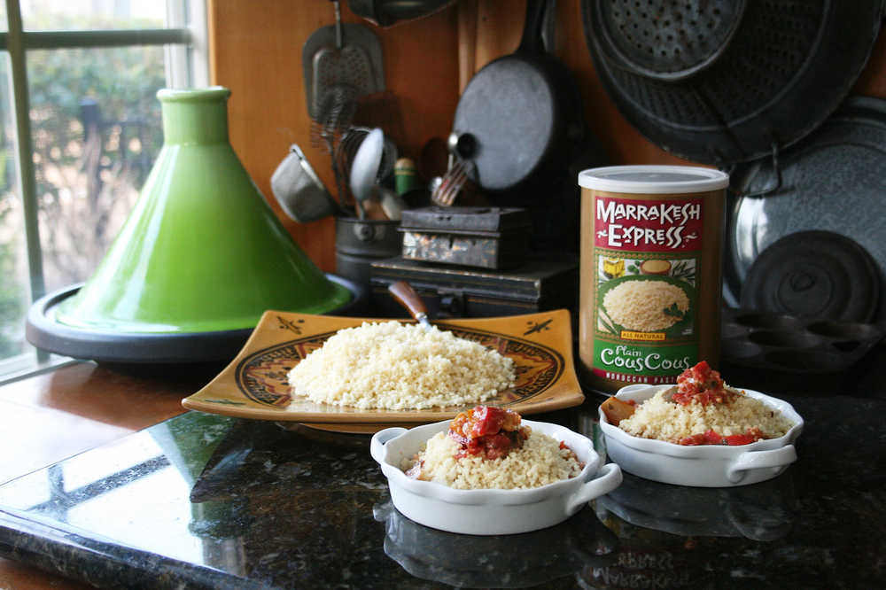 More South American than North African in flavor, the easy fish tagine featured here, made with coconut milk, sweet bell peppers, onions, tomatoes and cilantro, may be made with just about any kind of boneless fish fillet, as well as other kinds of seafood, such as scallops, shrimp, even clams or mussels, if you like. The dish is nice served with rice, but couscous works well, too, especially when it’s been enriched with coconut milk and coconut water.