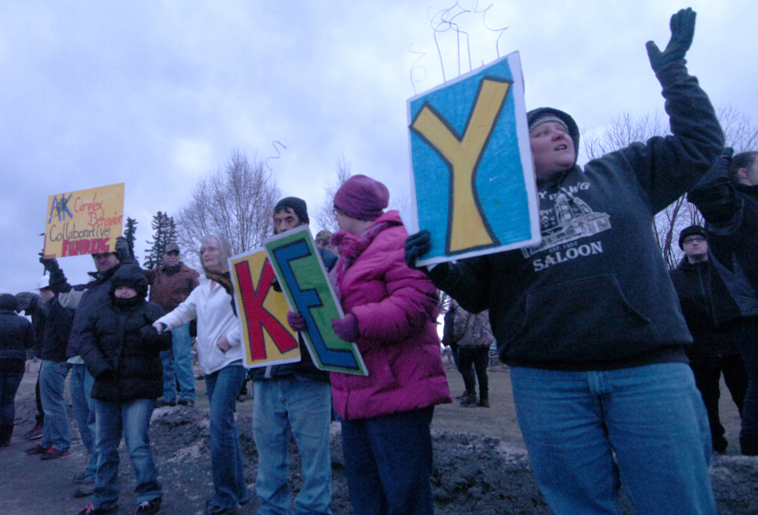 The local chapter of the Key Coalition, a group advocating on behalf of people seeking state aid for developmental disabilities, held its annual rally on Friday at Soldotna Creek Park. Volunteer organizer Lynette Haas of Hope Community Resources, one of the Coalition’s member groups, said that approximately 70 people came to demonstrate with signs and cheers by the side of Sterling Highway between noon and 12:40 p.m.