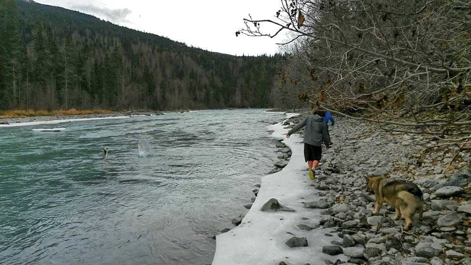 “We got down to where the alders grow kind of close in and there was one big brown bear track right in the middle of the trail. I’ve got a (size 14) boot and it was wider than my boot is long. You could see all of the claws and we king of ogled at that when the brush started making a bunch of noise probably 30 feet in. I was like, good grief. We continued along.”
