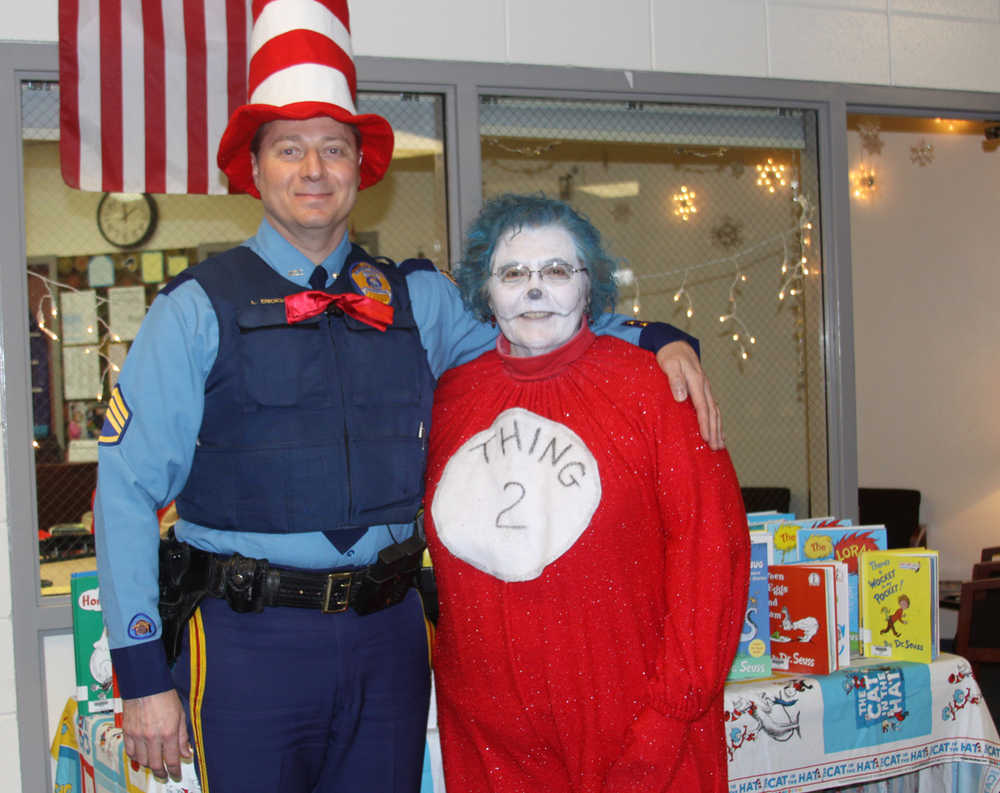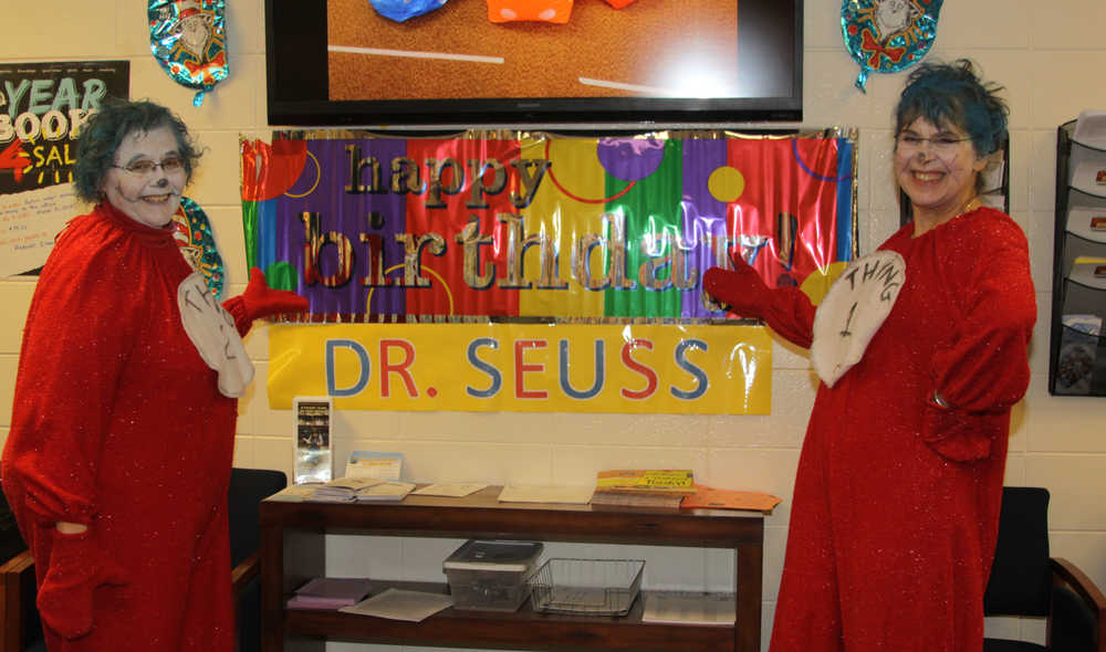 Making reading and books fun to a digital generation is a challenge that Redoubt Elementary School and the nationwide Read Across America program do every year on Dr. Seuss’s birthday. Born 111 years ago Dr. Seuss’s birthday has been chosen for the annual Read Across America as a legacy event in his honor. Theodor Seuss Geisel passed away in 1991 and was an American writer and cartoonist. He was most widely known for his children’s books, which he wrote and illustrated under the pseudonym Dr. Seuss. “I think the appeal is a lot about the rhyme, it makes the reading fun. His imagination went that way and he even made up words so they would rhyme,” says Sharon Hale otherwise known as Thing 2 who has organized the event at Redoubt Elementary for the last decade.