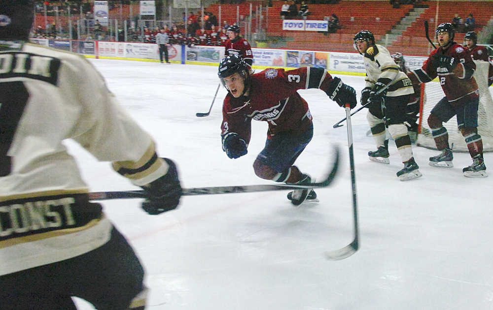 Fairbanks took a 1-0 lead in the first period on a Mitchell Baumann strike, but Kenai River stormed back in the second period, outshooting Fairbanks 18-8.