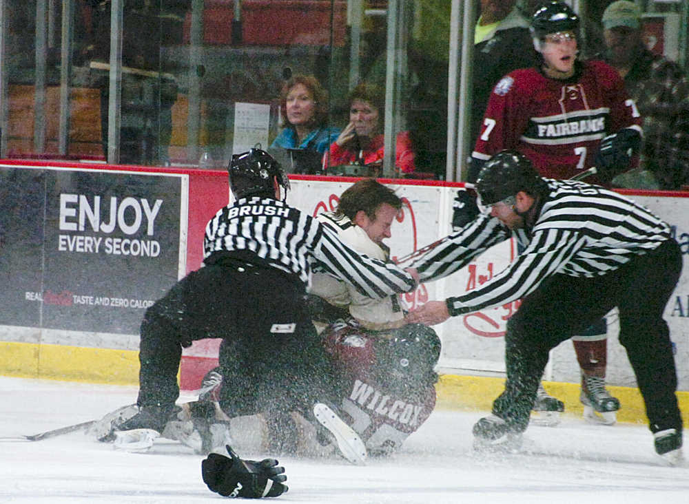 Third period — 4. Fairbanks, Burgess (Madry), 9:17; 5. Fairbanks, Ohrvall (H. Gorowsky, Teets), 16:47; 6. Fairbanks, Somoza (Burgess, Madry), 19:40. Penalties — Fairbanks 3 for 17:00; Kenai River 4 for 19:00.
