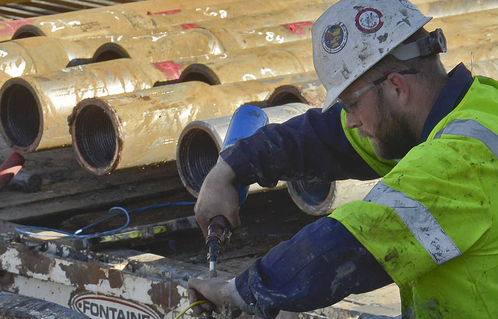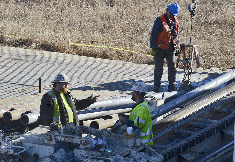 Workers with Arizona-based Southeast Directional Drilling worked in Tuesday to run the drill and make way for a pipeline which will connect the Cook Inlet Natural Gas Storage Alaska facility, or CINGSA, and Enstar’s transmission pipeline. The project is expected to be completed in June, said Enstar communication manager