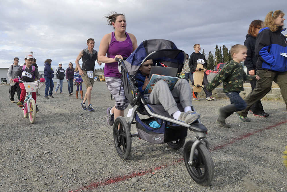 Also a part of the group is the inspiring story of Kenai Peninsula Fair executive director Lara McGinnis of Ninilchik, who was seriously injured in a car accident in March. McGinnis, who was pushed across the finish line Thursday in a wheel chair, was the recipient of a massive outpouring of community support to help her heal up and take care of difficulties resulting from her crash.
