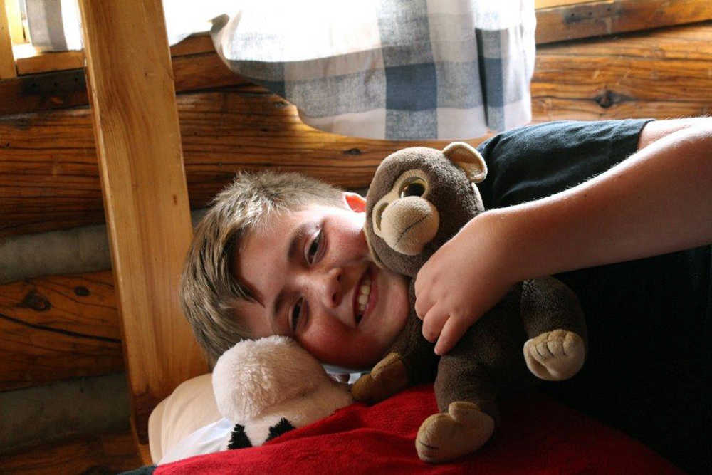 In this August 2013 photo provided by Sanborn Western Camps, a Junior camper holds his stuffed animal "friend" at camp in Florissant, Colo. Overcoming homesickness and spending time away from parents helps children gain self-assurance and independence, experts say.  (AP Photo/Sanborn Western Camps, Jeff Krueger)