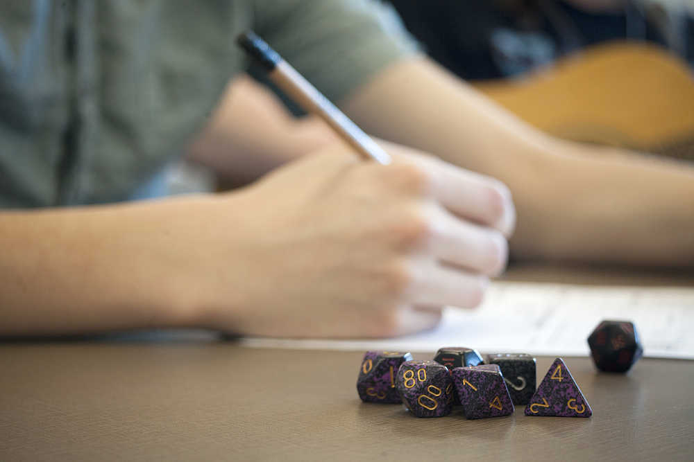 Some in the group are relatively new to table-top role playing games. Others, like the dungeon master Johnathan Rine, know their way around a character sheet and the many-sided dice used to determine everything from action in combat scenarios to perception of the world around them.