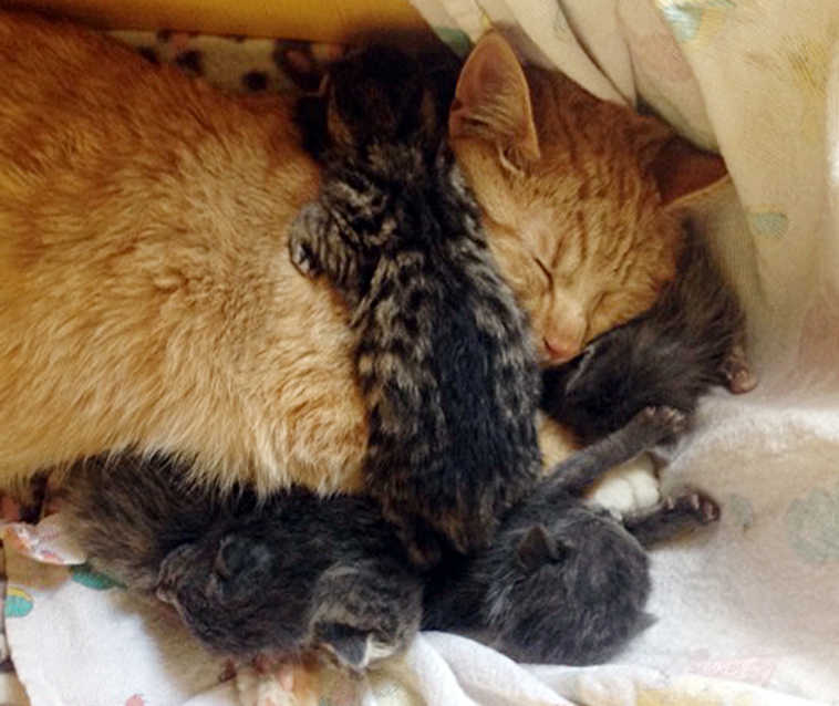 The kittens face an uncertain future since they’re too young to be vaccinated, but she said Henry’s care could be a difference-maker. “It’s kind of unusual for a male cat to decide take on the role of mother. But he’s doing a fabulous job and he’s probably increasing their chances of survival,” she said.