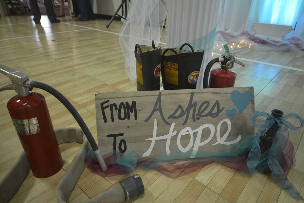 Daugherty and other volunteers transformed the community center into a quaint, fairytale-esque ceremony space, complete with twinkle lights, hard hats, boots and cupcakes decorated to look like flames. Signs and banners reading “From Ashes to Hope,” were scattered throughout the building, embodying the resilient spirit of the happy couple.