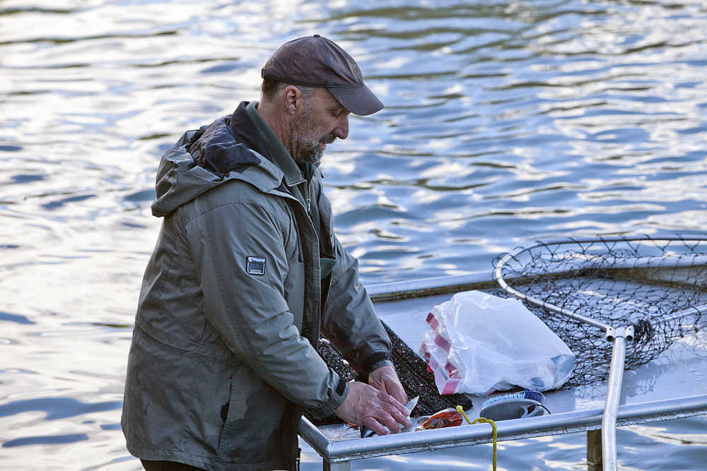 He stood at the site’s fillet table, cleaning his three fish at about 10 a.m., talking to the handful of other anglers who made their way down to the site for a chance at the sockeye run. The group agreed one a few things: one, that the fish seemed smaller this year; and two, that the run had not yet pushed into the river in full force.