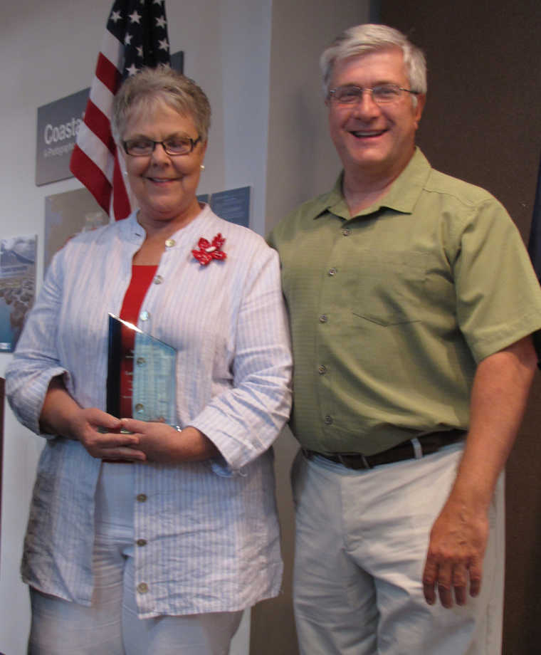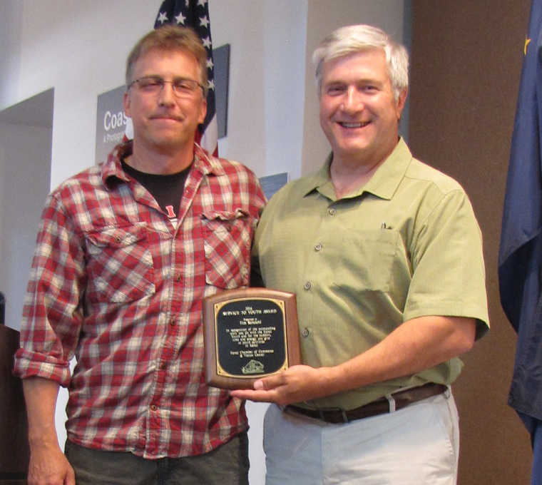 Wednesday, June 24th the Kenai Chamber of Commerce held its annual community awards luncheon before a capacity crowd at the Kenai Chamber of Commerce & Visitor Center. This year’s KCC Board Chairman Jeff Warton presided over the celebration of the traditional category of awards after presenting Larry and Pat Porter a rare lifetime Chamber membership for their years of community and Chamber service. The Service to Youth Award this year went to Tim Sandahl, “For 25 years Tim has molded and mentored our youth as they passed through his classroom and played on his courts and fields. His students have admired his positive approach to life and his endless positive energy,” said Warton in presenting the award. This year’s winner of the KCC Community Service Award to went Robert Ruffner, “He has truly crafted the Kenai Watershed Forum into an organization where all stakeholders in the watershed can have a voice, and the emphasis is on solid science and recognizing the ties between ecological and economic health. Active on several other boards and committees, including the East Kenai Chamber of Commerce Board of Directors, North Pacific Anadromous Fish Commission and the Kenai Peninsula Fish Habitat Partnership, this award winner has been a tireless steward for the waterways of the Kenai Peninsula, and an active voice in the community for years, truly focusing on “the fish first”. Recently this individual put his name in the” frying pan” for a seat on the Board of Fisheries, and while unfortunately he was not confirmed by the legislature by a narrow vote, we did learn a lot more about him through the process. We learned how much he cares about the fish, learned about his history and vision and values, and perhaps most importantly, we learned he isn’t from Anchorage. The Kenai Chamber is proud of what Robert Ruffner has done for the Kenai Peninsula communities as the leader of the Kenai Watershed forum, and we look forward to seeing what the future holds for him,” said Warton.